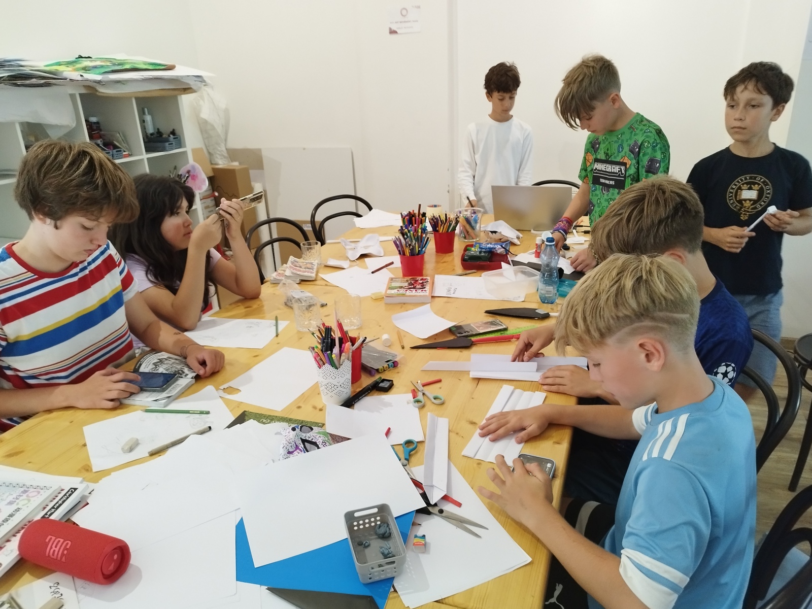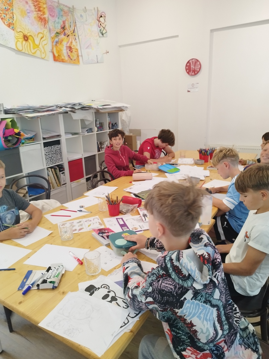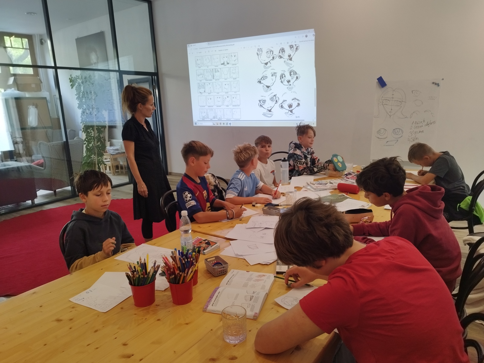 - Praktická tvorba komiksu – každý den děti kreslí okénko do společného příběhu